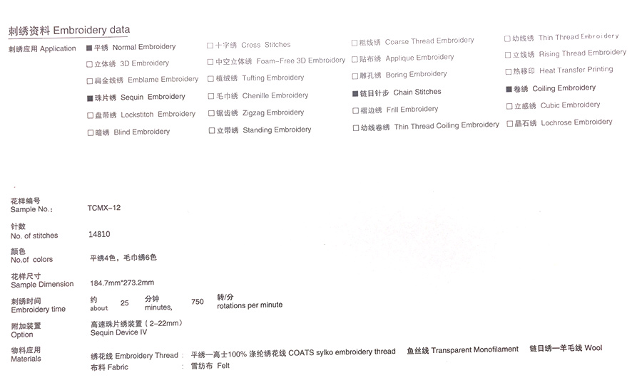 | 【產(chǎn)品名稱】 | 彩色小鳥圖案電腦卷繡鏈目繡珠片繡平繡加工 |